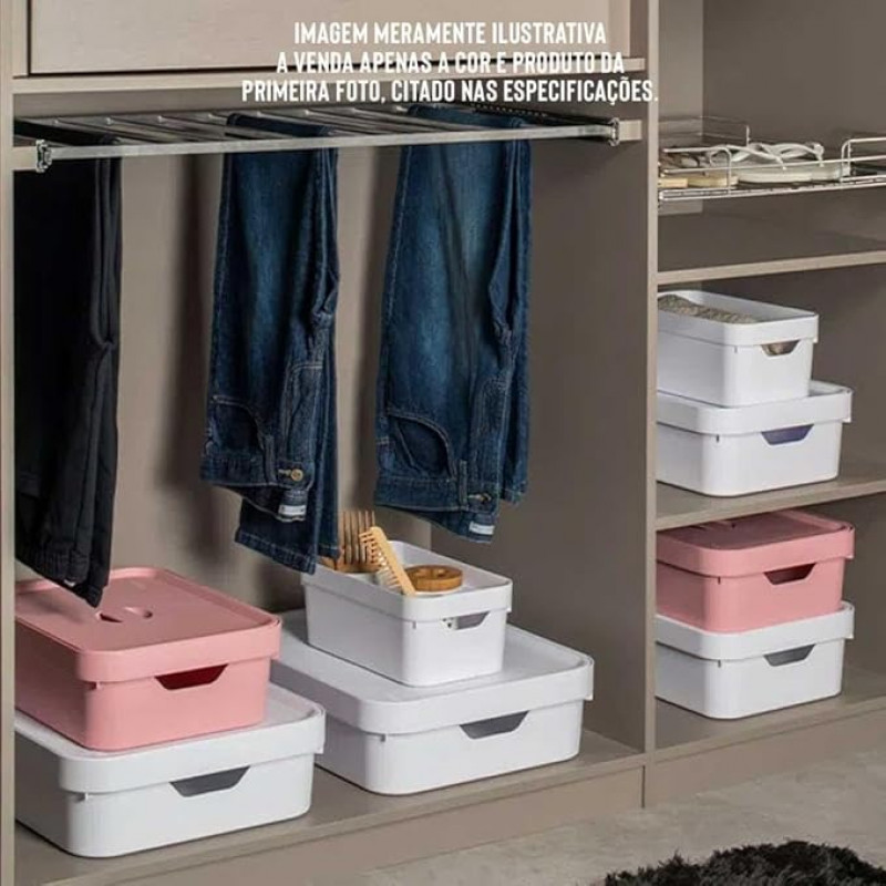 Seu design versátil permite o uso em closets, quartos, salas, escritórios ou lavanderias. A tampa protege o conteúdo contra poeira e contribui para um visual mais limpo e organizado no ambiente.