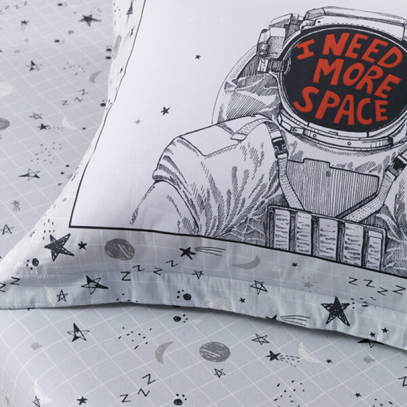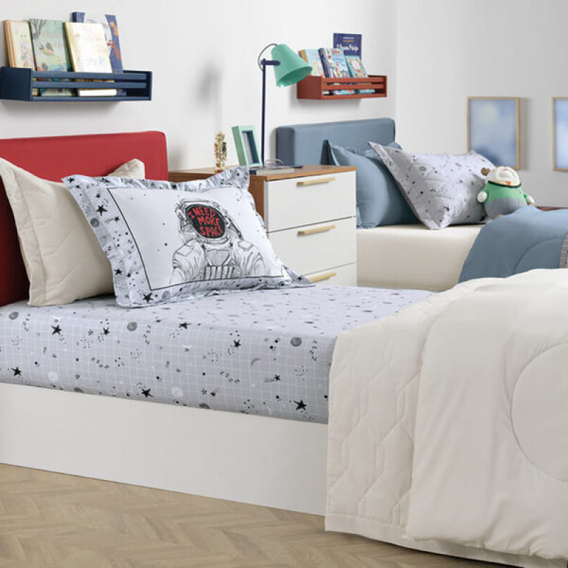 Leve o universo para dentro do seu quarto com o Jogo de Cama Casal Astronauta. Com estampa divertida e criativa de astronautas e elementos espaciais, este jogo de cama é ideal para quem ama o espaço e quer um toque moderno e lúdico na decoração. Confeccionado com tecido confortável e resistente, proporciona noites tranquilas com muito estilo.