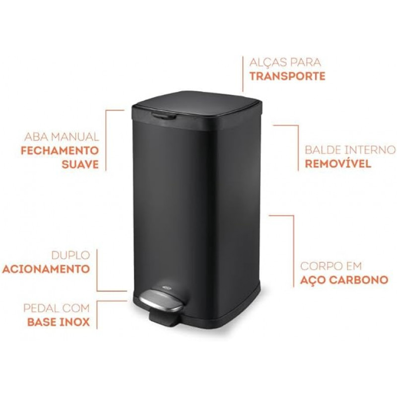 LIXEIRA C PEDAL E BALDE FRAME 20 L-PT
