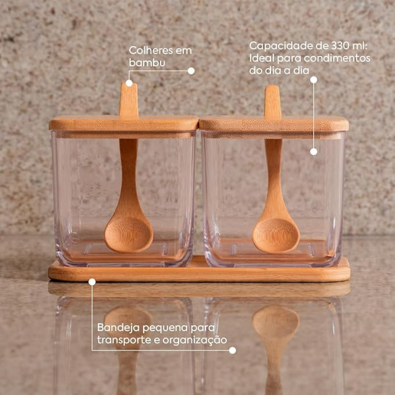 Fabricado em materiais resistentes e de fácil limpeza, o Porta Condimentos Duplo Brisa combina beleza e durabilidade, sendo perfeito para o dia a dia ou para servir convidados com estilo.
